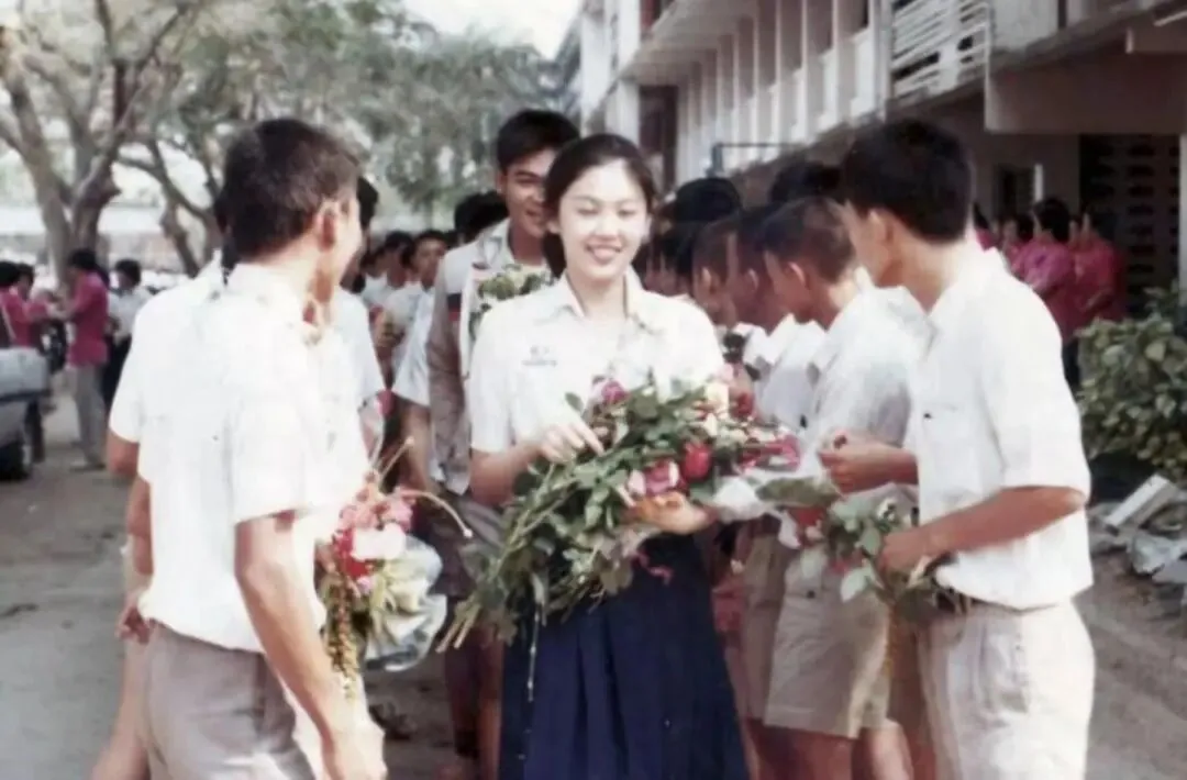 一群小男生送花。即使当成为泰国总理后,全世界的男粉依然对她爱慕,据说一天可以收到4万份情书。