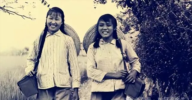 这俩女孩手里拎的是人造革书包,黑色的,带子宽宽的斜挎在肩上,扣子扣得严严实实,里头装着课本和铅笔盒,书包磨久了边角会翘起来,露出里头的硬纸板,长辫子甩在背后,校服洗得发白也照样穿,那时候上学路上三五成群,走得慢悠悠的,到了学校铃声一响就往教室冲。