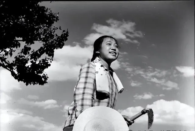 图中女孩手里拿的是草帽,麦秸编的,边沿宽宽的能遮半张脸,夏天出门往头上一扣,太阳再毒也不怕,格子衫袖口挽起来,脸上笑得眼睛眯成一条缝,帽子戴久了里头一圈汗印子,奶奶说这东西透气,比现在的遮阳伞实用多了。