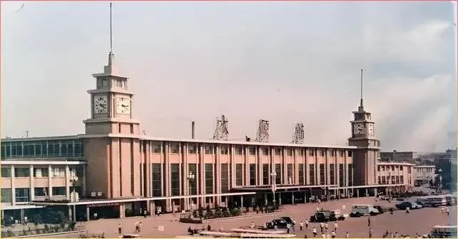 这张太原站的老照片,是.多少太原人心中.永远的地.标啊! 那座粉红.色的站房,配着对称的钟楼,在80.年代简直就是太原.最洋气的建筑了。站前广场.上停着的那几辆老解放卡车和自行车,现在看来简陋得很,可当.年这就.是太原最繁华的门面呢。一座车站,承载.了多少离别与重逢,见证.了一座城市.的变迁。