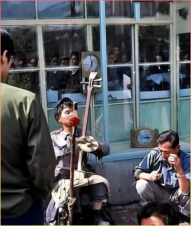 瞧.这位拉二胡的师.傅,这场景现在可.真难见到了!.他坐在街边,身后是挤满了人的玻璃窗,手里的二胡.拉出.的是那个年代特有的曲调。围观的人.们有的抽着.旱烟,有的端着搪瓷缸,这.就是80年代最寻常不过的消遣方式。没有手机,没有网.络,一把二胡就.能聚起一群人.,那份简单的快乐,才是真快乐。