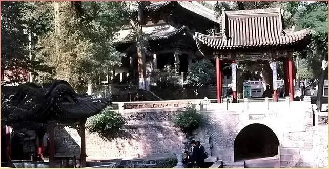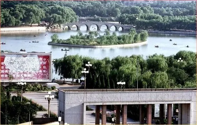 这是从高处俯.瞰的景色.,能看到晋祠园.林和远处的小桥流水。80年代的太原,还保留.着这样大片的.绿地和古.典园林,空.气里都透着一.股.子悠然自得。