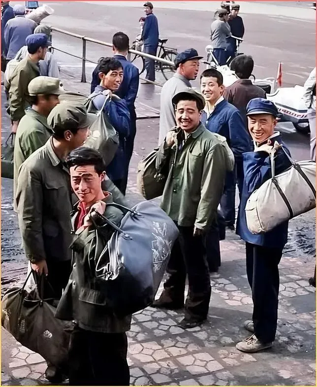 这群等车的人们,个个穿.着军绿色或藏青.色的.衣服,背着帆布包,提着网兜,脸上是那个.年代特有的.质朴.笑容。没有行色匆匆,没有低头看手.机,人与人.之间的交流是.那样真实而温暖。