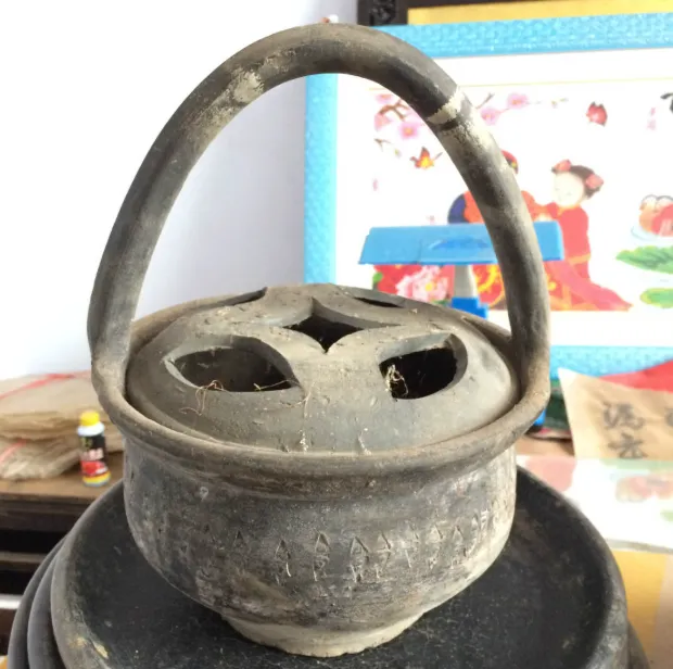 图里那个圆胖矮墩的东西叫暖手炉,冬天北京的街口冷风透骨,这物件塞满了细灰炭粉,用铜皮或者紫铜包出来,底下钻点小孔,热气慢慢往外跑,老一辈都夹在袖管里,就跟攒一团热气在手心,爷爷出门还记得嘱咐一句“天冷手炉别丢”,小时候冬天去早市,见店家手插袖管,脚底下嚓啦嚓啦踩,炉口上往外飘小股白烟,那味道到现在想起来还能闻见一点。