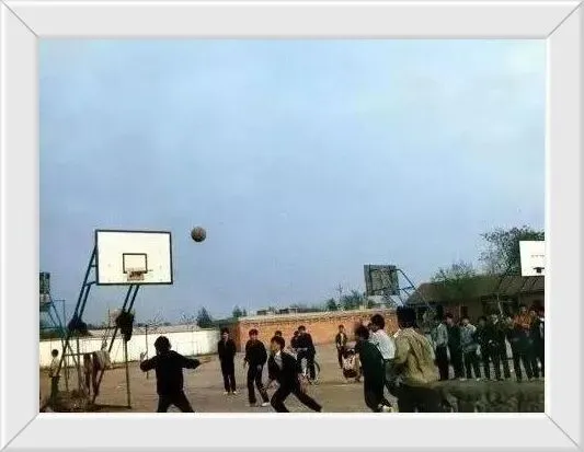 1993年固始一中球场,热火朝天打篮球的学生。