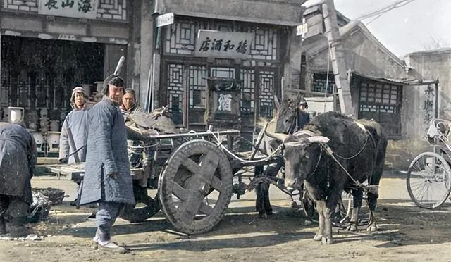 一辆装满货物的马车停在客栈门口,赶车的汉子卸货搬箱,这是做买卖的小商人,南来北往全靠这两个轮子,木头做的车轮没什么减震,坐上去颠得五脏六腑都晃,可那会儿能有辆马车已经算体面,爷爷说他年轻时跟着车队去过一趟郑州,一路走了三天两夜,屁股坐得生疼,到了地方腿都不会打弯。