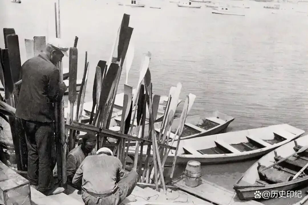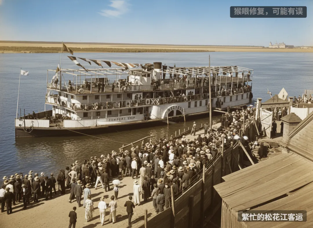 繁忙的松花江客运,疑似道外码头,江中为狗岛。