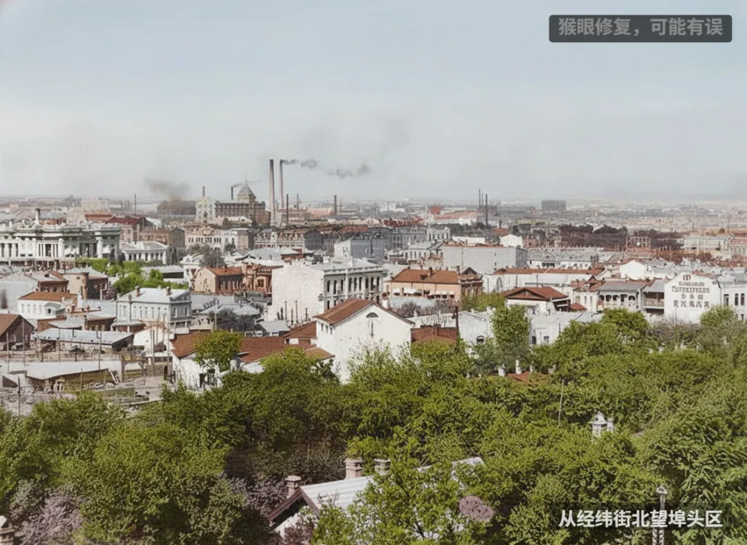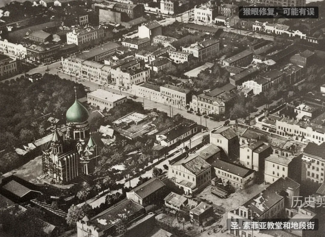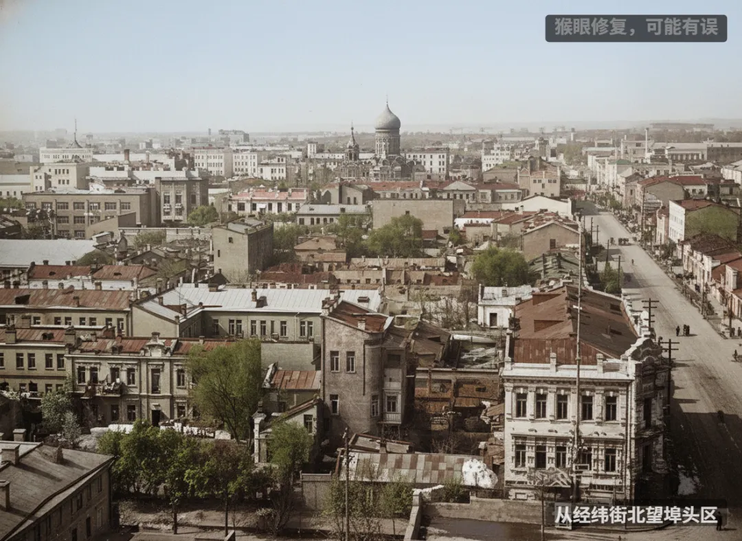从经纬街北望埠头区,清晰可见圣. 索菲亚教堂,右侧疑似地段街。
