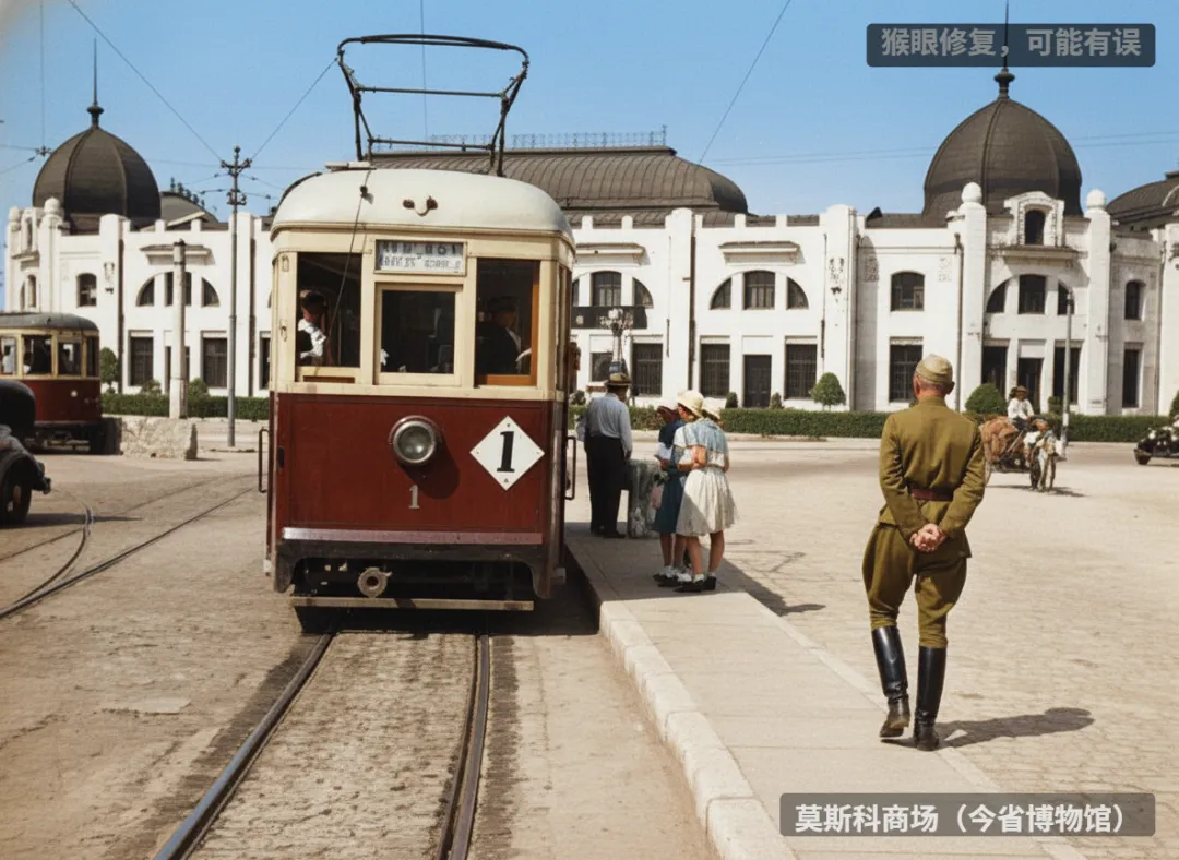 莫斯科商场(今省博物馆)前的摩电车