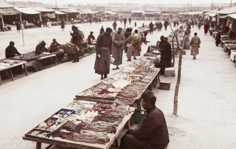 这张老集市的照片,摊位一铺就是一整排,香串珠子、草药、铜饰样样都有,摊主猫着腰,一手拨珠手还得空招呼人,“要啥自己拣”,买的人蹲在低矮凳子上顺着风辨味道,小时候跟爸爸路过,吆喝声不大,听多了就知道哪个摊子的药靠谱,到现在,这些老摊档都用铁皮房和霓虹装扮,货倒是花了眼,可没人再耐着性子拣一颗珠,从早到晚都是人赶人地走,慢悠闲早留在尘土里头了。