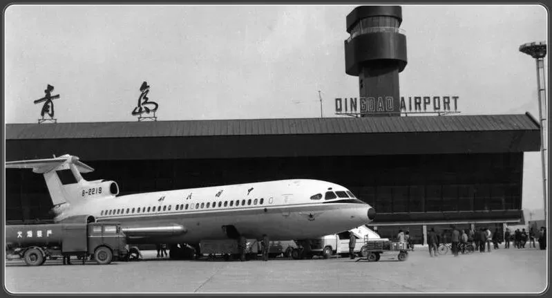 老式加油车、行李拖车,充满了那个时代独有的质朴。流亭机场当时是青岛唯一的民用机场,直到后来被胶东国际机场取代。