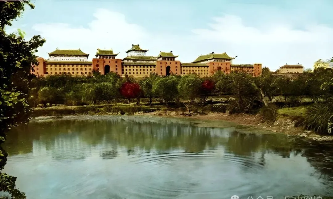 这组楼就是九十多年前的武汉大学,几座砖红色“大屋顶”排成一溜,正门到主楼全拉开了气势,前面的小水塘倒影刚好铺满,听父亲讲“那时候谁考上武汉大学,邻里都会过来道喜,真是响当当的大事”,如今高楼围起来没这大气了,可那股子书香气还是有。