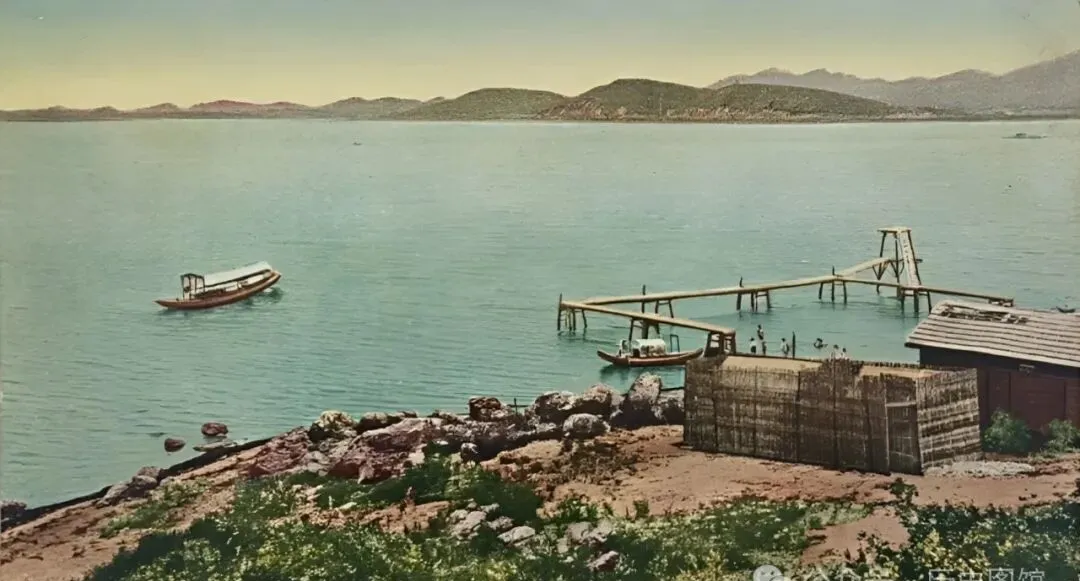 湖边这一角就是东湖浴场,竹栅栏、小木桥搭到水面,有人在那儿游泳,有船静静停着,父亲打小最喜欢下水玩,回来全身晒得黢黑,回忆那种“夏天只想泡在水里”的感觉,现在再也找不回来了。
