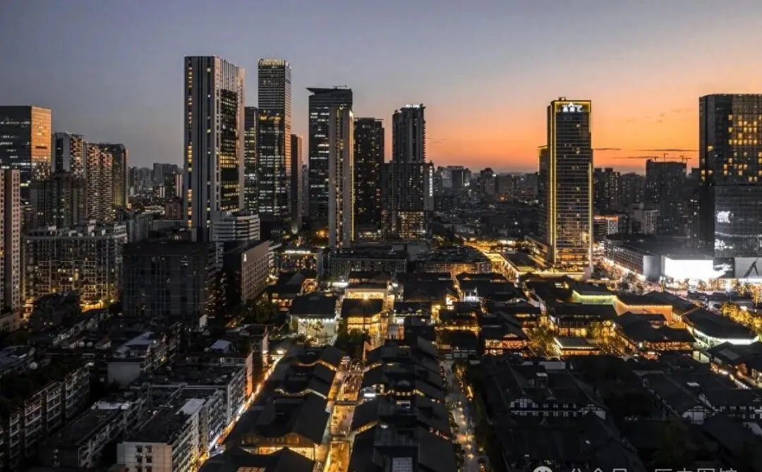 图里这片就是现在的春熙路、太古里一带,曾经谁能想到,一块老城区,有一天能长成这样高楼大厦林立的模样,以前黄昏一到,灯光没现在味浓,楼下的铺子也不晚上点,商场刚冒头那会儿,门口蹲着收废品的和摆摊的,最热闹不过夜宵摊,老成都人还喜欢扯把椅子坐大街边上,看人来人往,热闹得有板有眼。