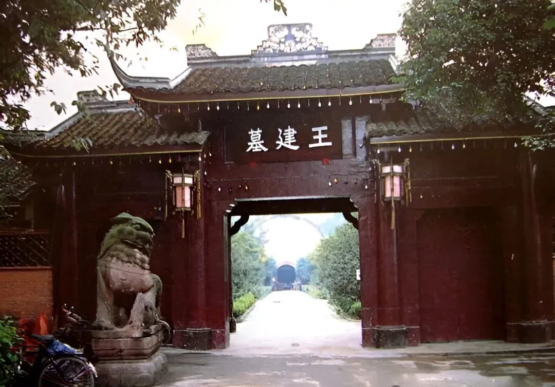 这个老门叫王建墓,红墙黑瓦子,左右一对石狮子蹲着,门口立着的灯笼和斑驳的字划拉着带劲,小时候路过这里,总觉得有种说不出的古意,奶奶说这是前蜀皇帝的的地上皇陵,成都唯一的地上陵寝,逢着节气,还有不少老人专门要过来转一圈。