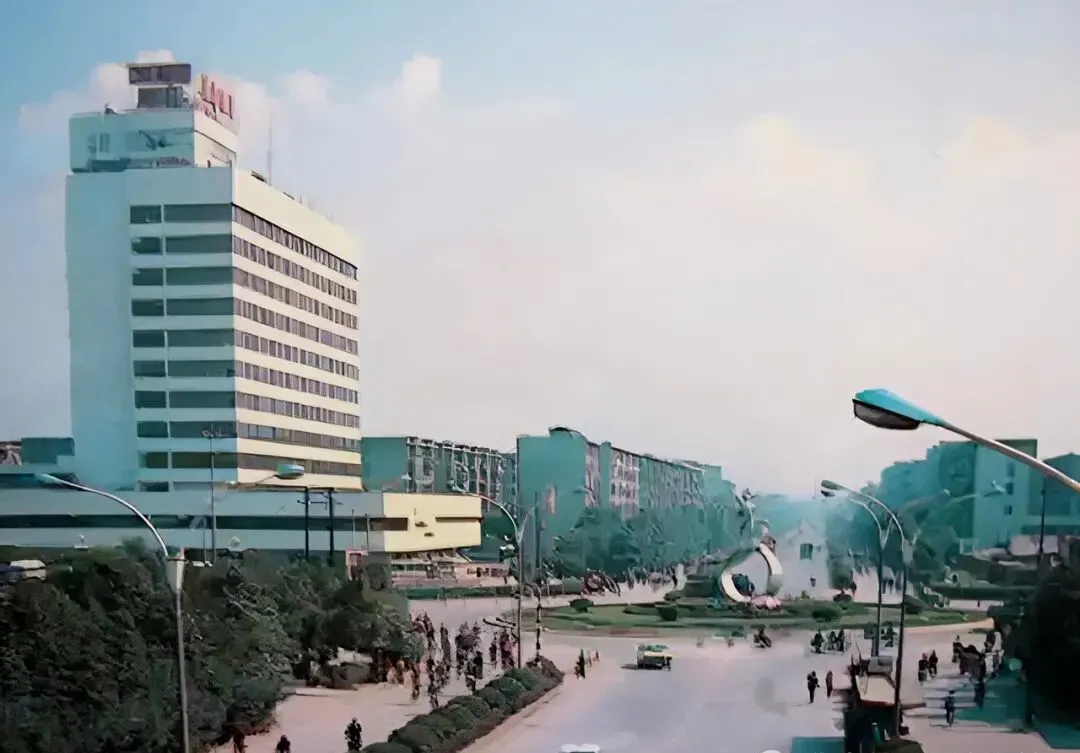 这个白色大楼就是老成都最气派的成都饭店,建成刚好13层,八十年代初已经算是地标了,高个子一栋特别扎眼,四周商铺还没现在多,那会儿别说星级酒店,想在饭店喝碗汤吃顿面条都是稀罕事,出差的人住上一晚回去都喜欢吹上一嘴。