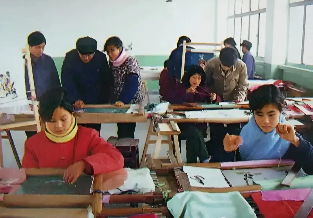 这张是蜀锦厂的内景,排排织布机前都是穿着厚衣服的女工,屋子里的声音细密得很,飞针走线咔哒咔哒都透着一股认真劲,做出来的蜀锦,细腻得能映人影,08后的孩子怕是都没见过工厂车间开足马力的样子,以前成都有“锦城”名堂,就跟这点功夫有关系。