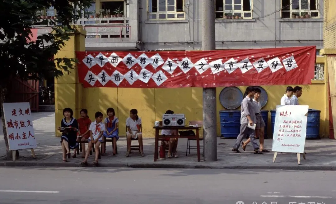班里组织去街头宣传“争做文明市民”,红布条挂一排,少先队员坐长凳上脸蛋红扑扑的,小喇叭里传出广播体操,那阵子“讲礼貌 讲卫生”是头条大事,邻居阿姨还会拉着娃报名扣文明章,和现在社区楼下发传单的景色不一样,大家都真心当回事。
