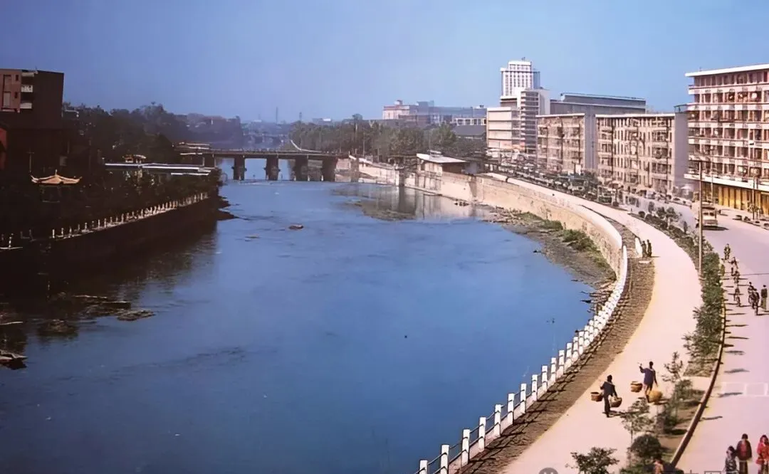那时候南门桥外头的栏杆还不高,靠栏处常有人倚着看水,左边的树荫下是老街摊子,河水带点青灰色,偶尔还能看到有人洗衣或者扛着东西过桥,桥下水声哗啦,是成都慢节奏的写照。