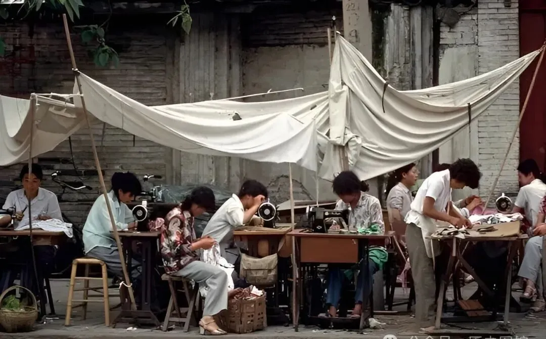 巷口一排露天缝纫机,遮阳布罩得歪歪扭扭,七八个大姐小妹,埋头赶布做针脚,改裤脚补破洞的小买卖就这么做了几十年,楼上住家的小孩想熨裤子也得来这里排一会儿队,今天住进小区的年轻人,怕是都没和裁缝屁股挨着过。