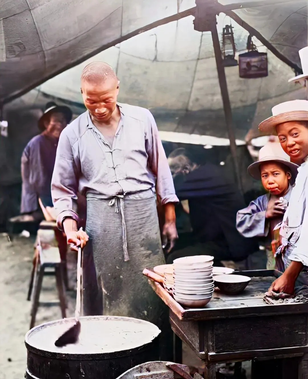 卖早点的小铺子,灶台大锅咕嘟嘟冒着热气,师傅一勺一勺的盛胡辣汤,有人光顾不问价,有人干脆搭句话,“这活累不?”师傅忙都顾不上回,看着也心疼,那年月卖早点算是门生意,辛苦不多说,能糊口就好。