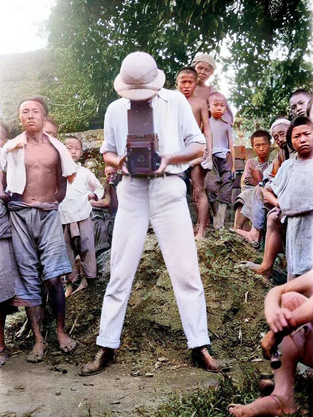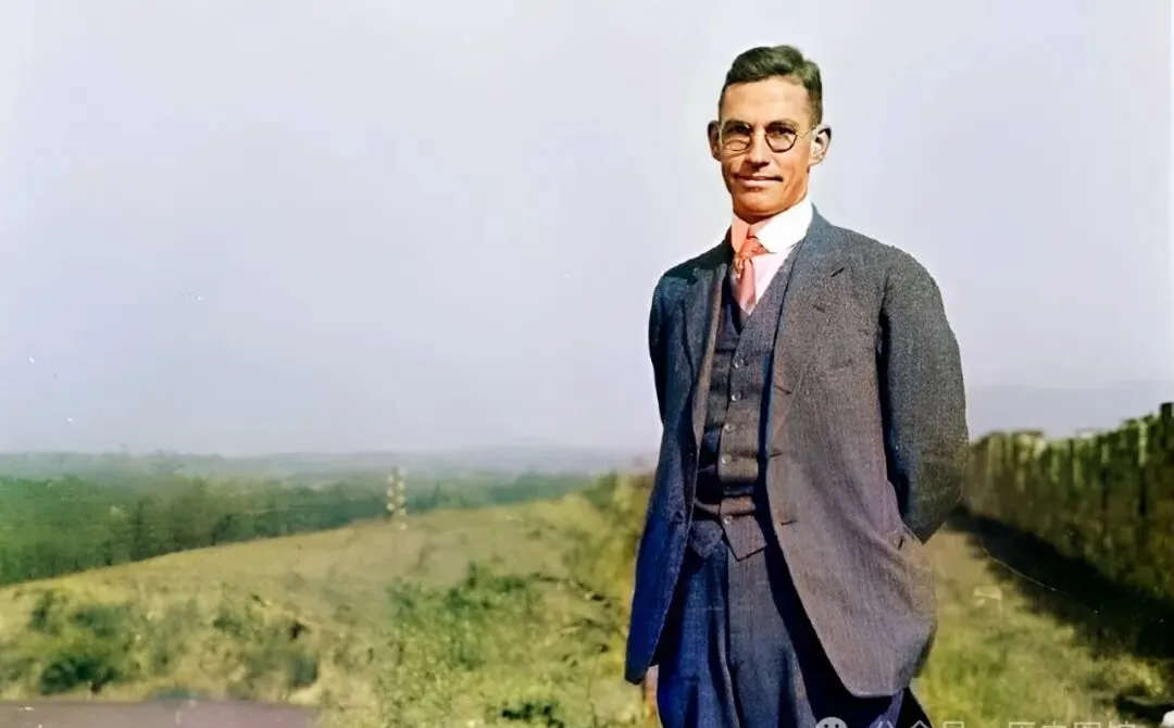 图上西装革履的这位,是外地人,身姿挺括,戴副圆框眼镜,一看就跟乡里人不一样,那个时候的遂宁,出来这么一号人,准得是大事,细看身后,还是大片田野和缓坡,风一吹就带着草腥气,他把镜头对着远山,也不晓得是拍风景还是给自己留纪念,这镜头下的光影,百年之后看着还是熟悉。