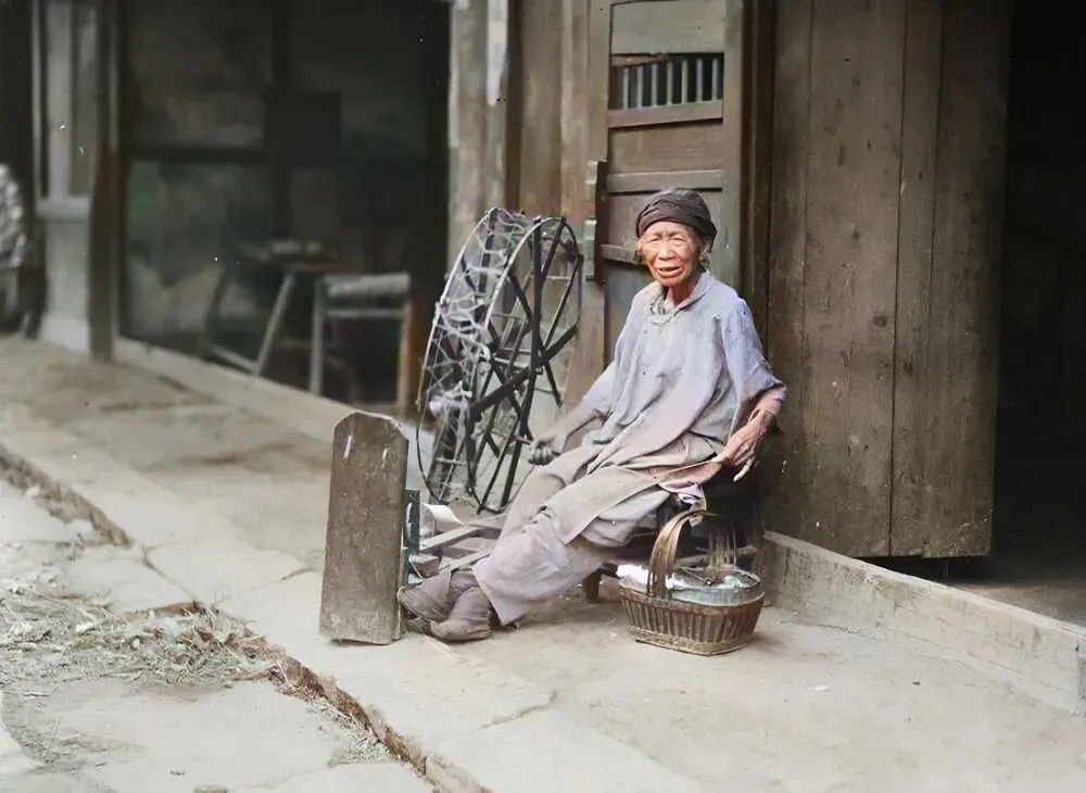 照片里这位老奶奶,七老八十岁,灰蓝衣裳,瘦瘦小小靠在门口,手上纺车慢悠悠摇着,面前的小篮子放着线团,看起来淡定又专注,这纺车的咯吱声老远都听得见,她脚边那双裹脚布包得紧,小时候蹲在地上学着摇纺车,老奶奶还会弯下腰给我指道,这会儿一阵风过去,仿佛还能闻见线团上的汗味。