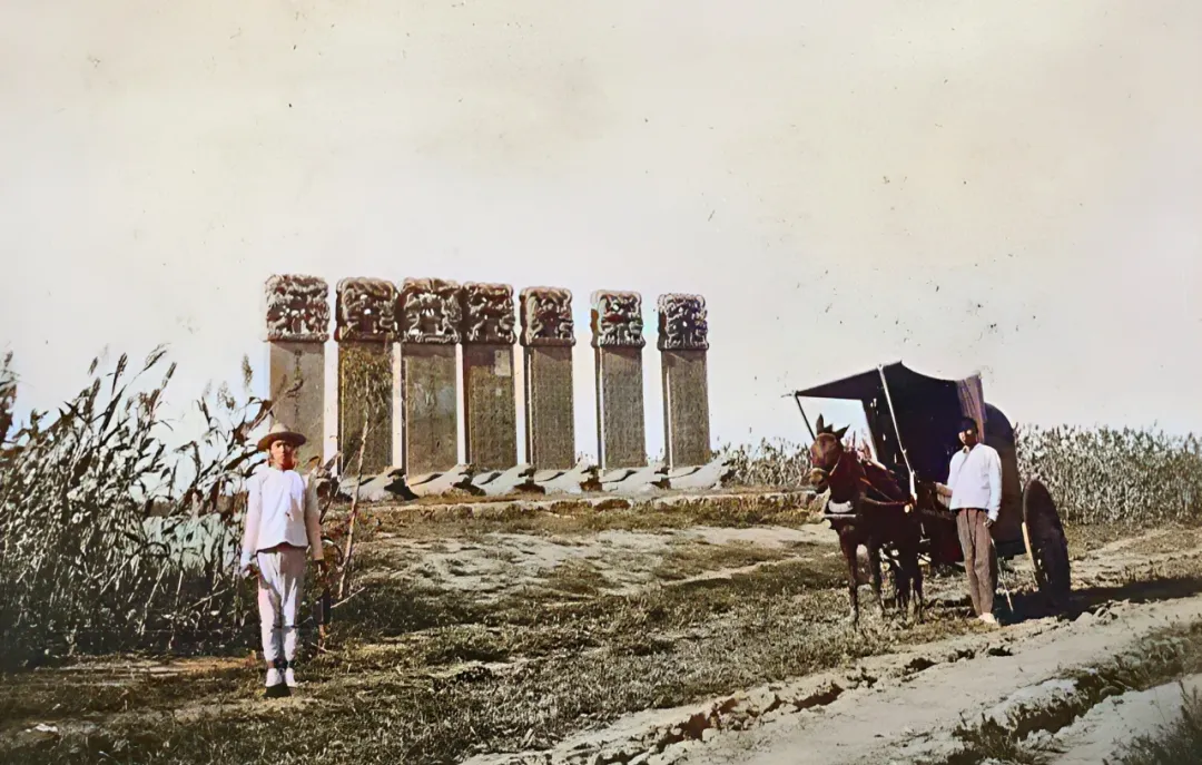 老照片:1910年,山西境内一排7座石碑,太壮观了,这是何人的墓碑?