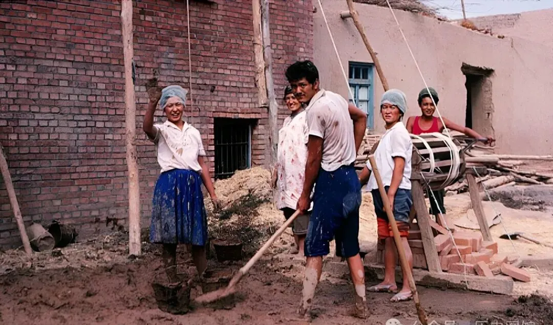这群年轻工人,女孩小伙全脏着脸,笑着冲镜头摆手,后面自制木滑轮咯吱作响,靠滑轮绞盘把砖泥往上送,“别看咱这设备简陋,人心齐活儿干得扎实”妈妈那会儿总这么说,时光过去了,这股精气神一点没变。