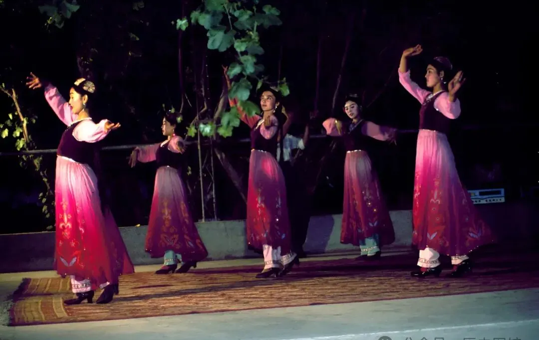 夏夜里露天院子,姑娘们围一圈跳舞,紫色裙摆随着手臂划过,脚下踩着地毯,灯光把她们的裙子打成了浆果般的颜色,这种场面小时候一次都没见过,妈妈说只有过节和婚礼才跳,欢喜劲儿从家门口一直洋溢到隔壁巷头。
