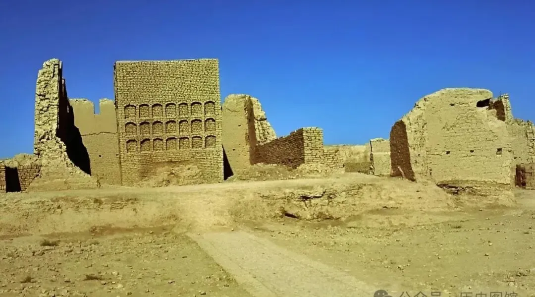 这一处土黄色的废墟高高低低,全是断壁残垣,墙上很多小拱窗洞,有点像锅炉房里烟窗,老人说这是交河、高昌那边的遗迹,砖头缝里长满杂草,站墙根往上一抬头,过去的时光就好像一点点塌回地里去了。