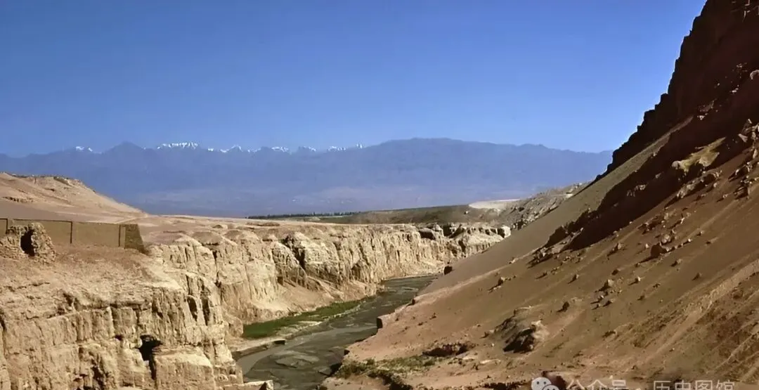 **图里的大峡谷,一弯小河绕着干裂的山沟走,两岸全是裸露的黄土,远处雪山还盖着顶白帽子,**风一刮就是整整一阵黄沙,我爸总说吐鲁番的风和太阳,是让人一辈子都忘不了的记号。