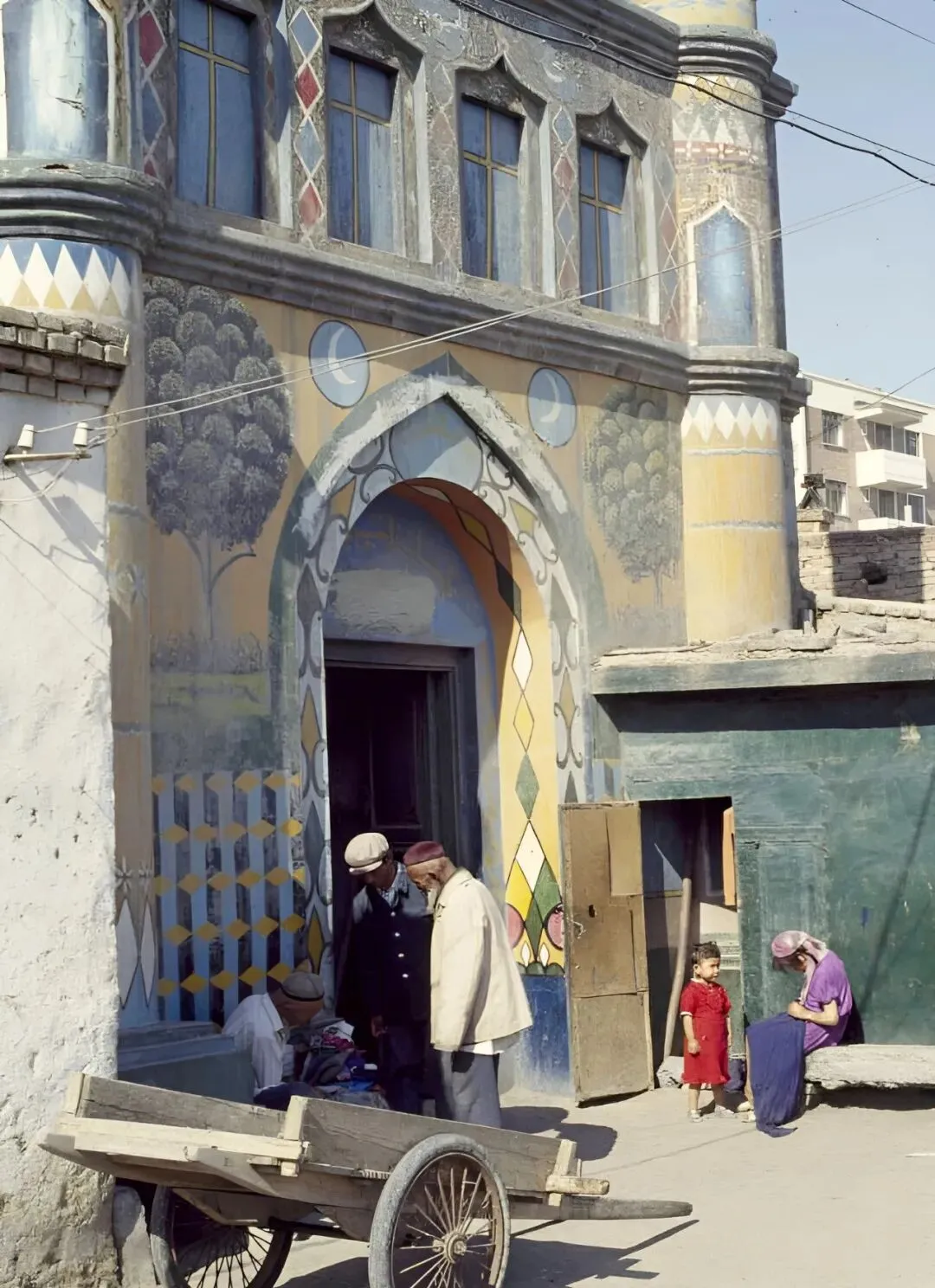 清真寺前的老爷爷们坐着