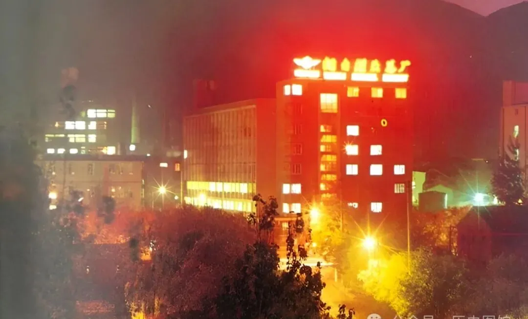 夜里红字闪烁,那一块块厂房就是传说中的烟台罐头总厂,全城都知道的牌子,有家里亲戚在那上班的,年年分罐头带回两箱,玻璃瓶装着桃子,甜得腻歪,楼上楼下灯一个都不舍得暗,远远一看像节日一样热闹,现在烟台早就不靠罐头吃饭,有这个记号的人还记得那味儿。