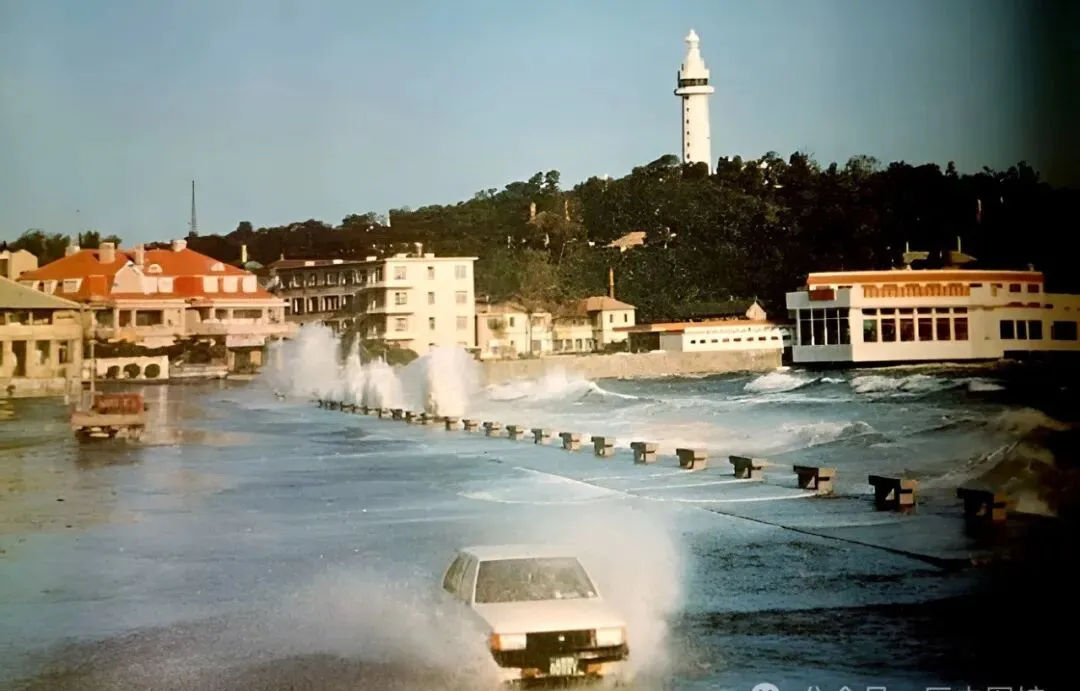隔着海,烟台人都知道涨大潮,水淹着路面,拍子车、桑塔纳,一冲就浪花四溅,远处的灯塔照常亮着,有年冬天,老爸带我专门来看海水灌路,孩子见了新鲜,妈妈还骂“都潮湿了还跑”,现在主路加高早就不会被水浸,倒是那种一脚踩水的场景再没遇上过。