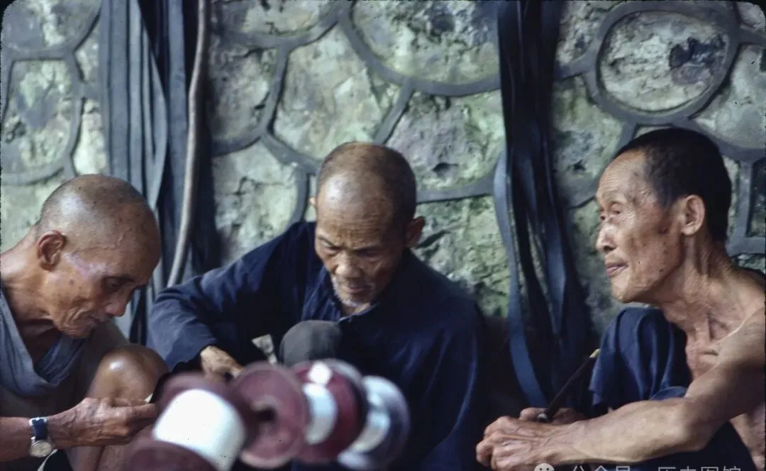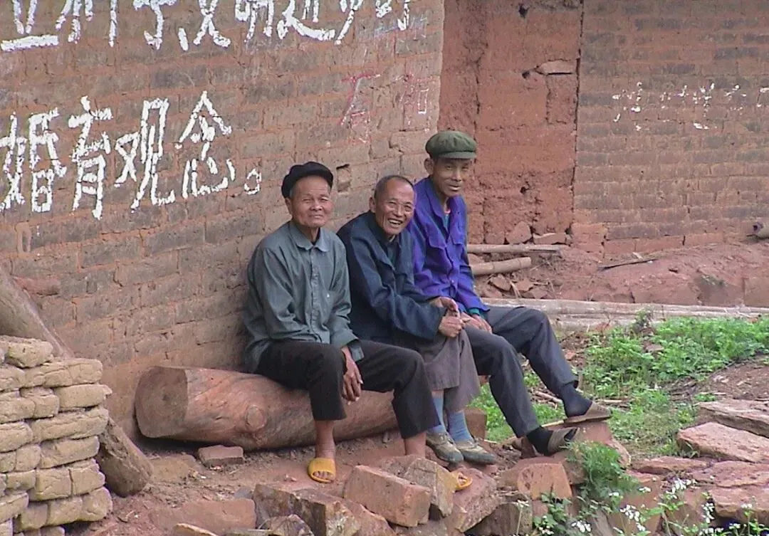 桂林村子里,三位老哥搬个木头就着墙根坐下,一人点旱烟,一人倚着膝盖,后头的标语字迹还带着那个年代的棱角,说话都是“我们年轻时嘛~”,晒太阳不嫌时间长,讲的全是庄稼和亲戚邻里的细枝末节。