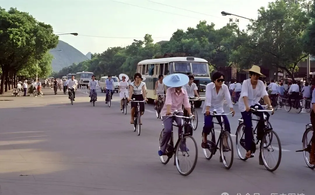 八十年代的桂林街头全是自行车,女孩子头上顶着宽沿帽子,一路骑得带劲,马路宽敞,偶尔跑两辆公交,风吹裤腿哗啦啦,“那时候谁要是有辆二八大杠,回村炫一个月。”