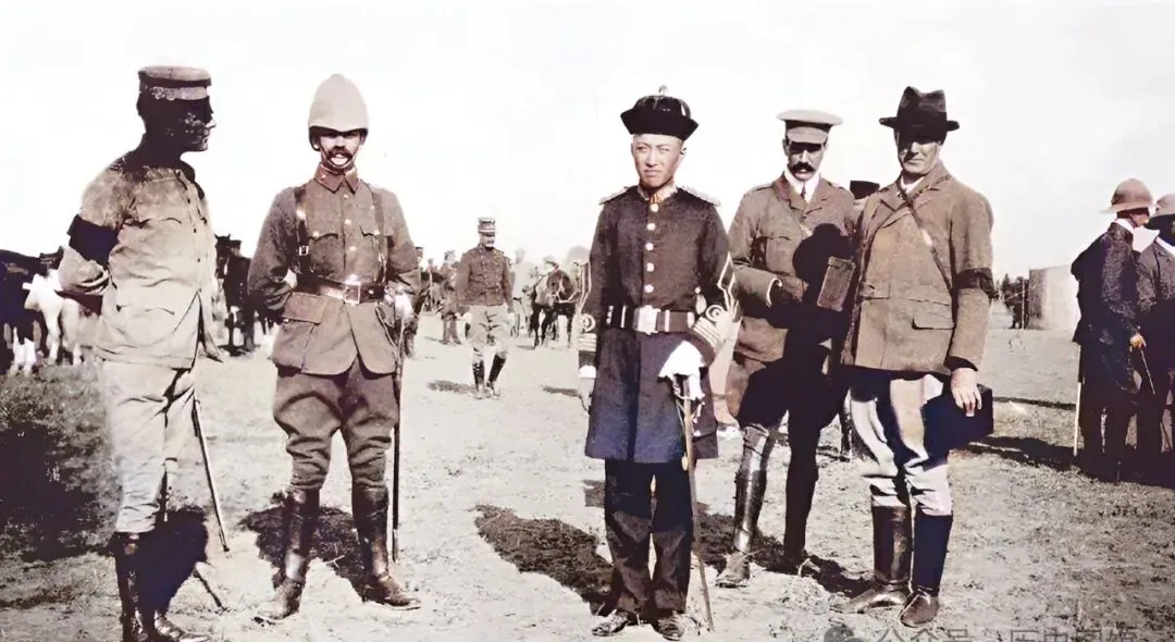 这一张照片里,有清军,有外国兵,黑压压塞满了前后场,脚底下卷着灰尘,几乎挡住天光,大家排成一溜,穿着各式军服,有的人明显是过来观摩的洋面孔,表情专注,气氛比现在的阅兵还肃穆。