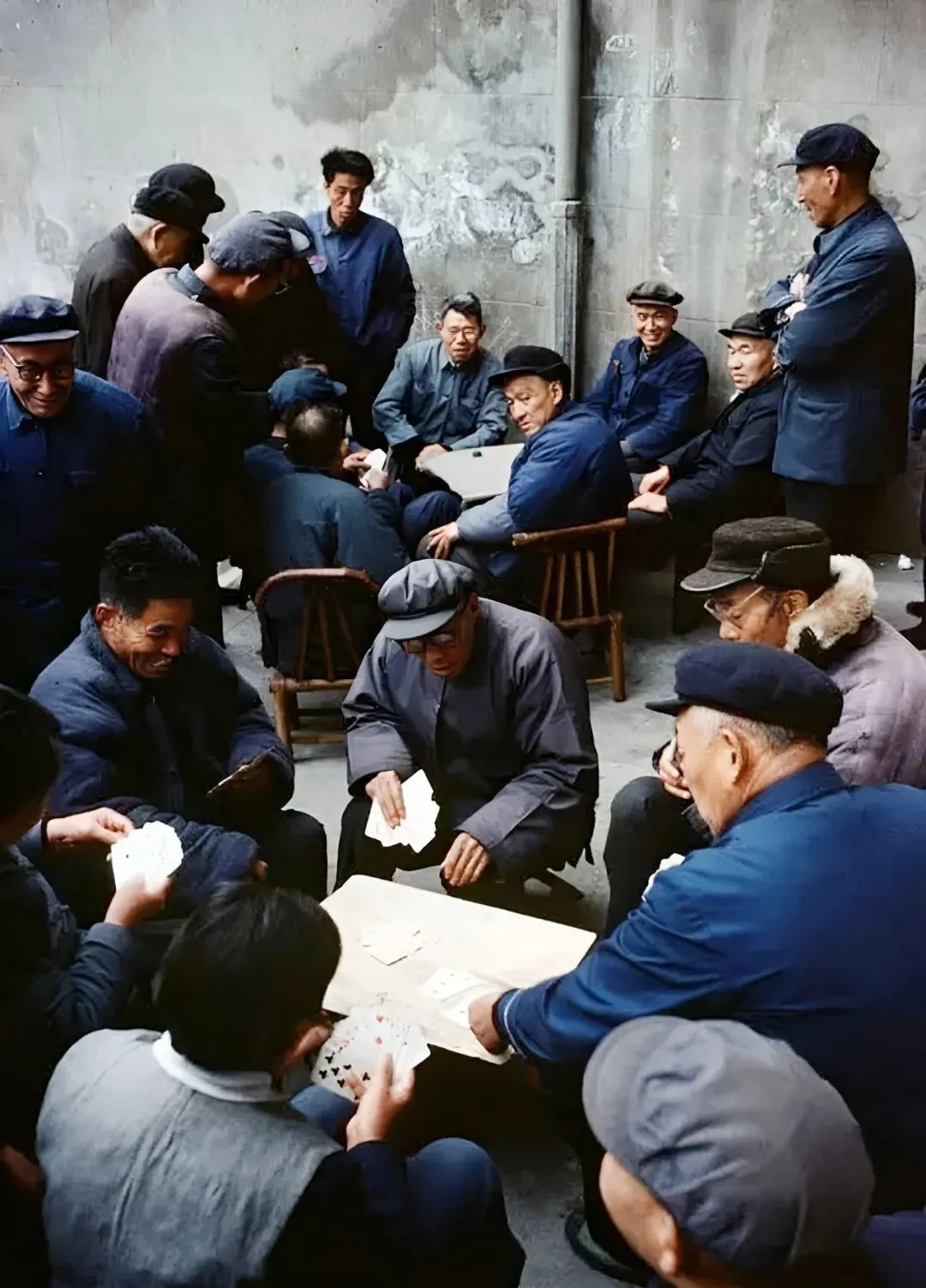 图上这位穿着西装红围巾的老外,叫布鲁诺巴贝,法国来的摄影师,他那年跑到上海,到处拍,这一身打扮,在当时的上海不多见,背景是水泥墙,带点工业味儿,他镜头下的上海人,和自己日常老邻居差不多,笑容里有点腼腆又带劲头。