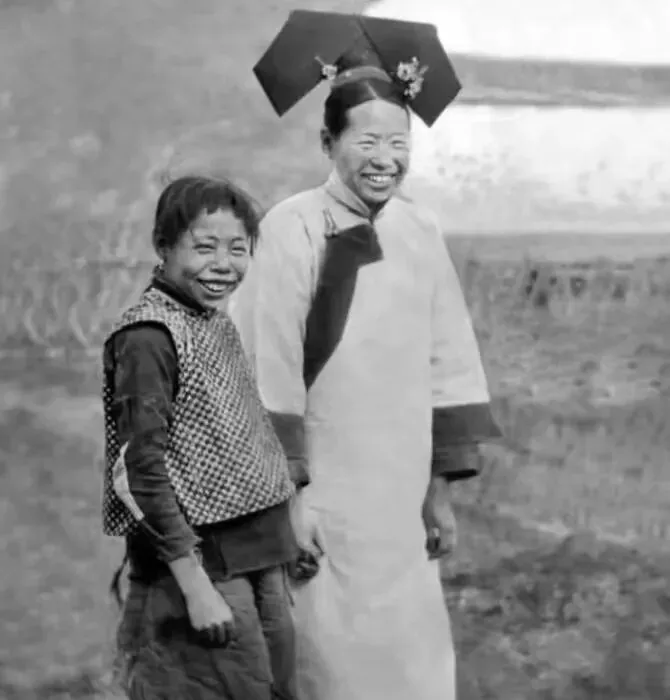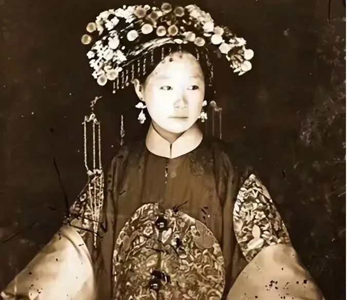 老照片里,宫女们梳着整齐的旗头,