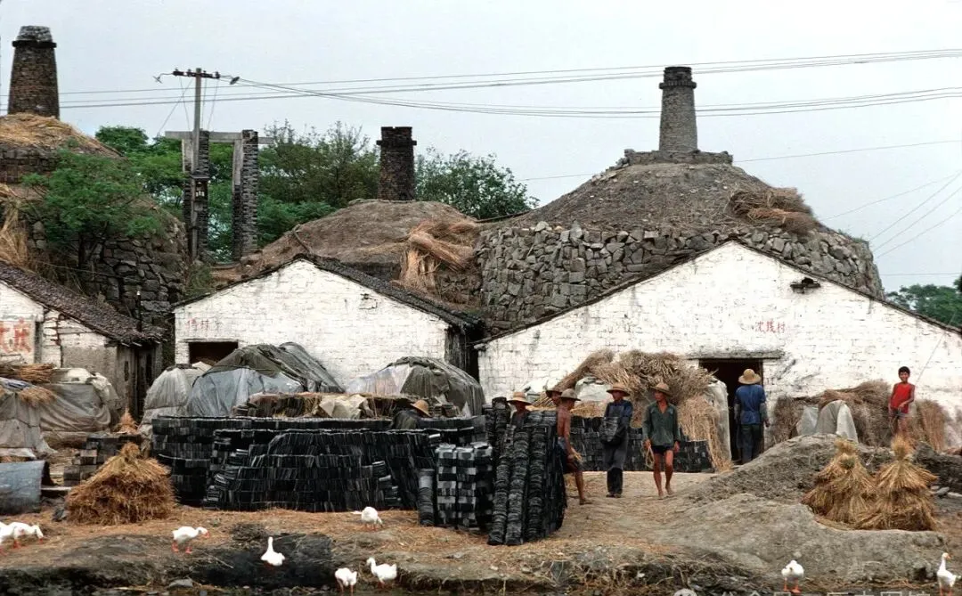靠近一看,砖窑墙上“沈钱村”“傅村”红字,工人正弯着腰搬瓦片,晒黑的胳膊上肌肉一块块地鼓着,孩子追着鹅跑,女人坐在阴凉下歇脚,这些年头砖窑不见了,村头变高楼,老瓦片已是稀罕货。