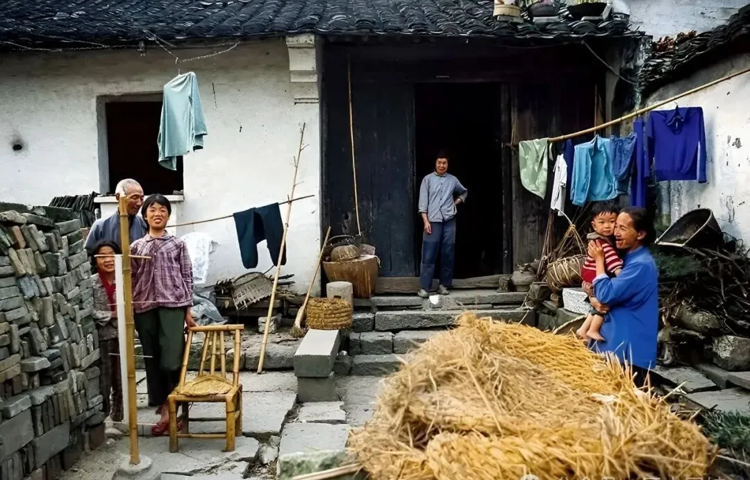 谁家院子,门开一半,老人站着聊天,院子里椅子竹筐,稻草堆成一座小山,晾衣杆上还挂着脱色的褂子,孩子挤在大人身后打量陌生人,院外石子路拐出去就到桥头,这样的生活,一天和一年没什么两样。