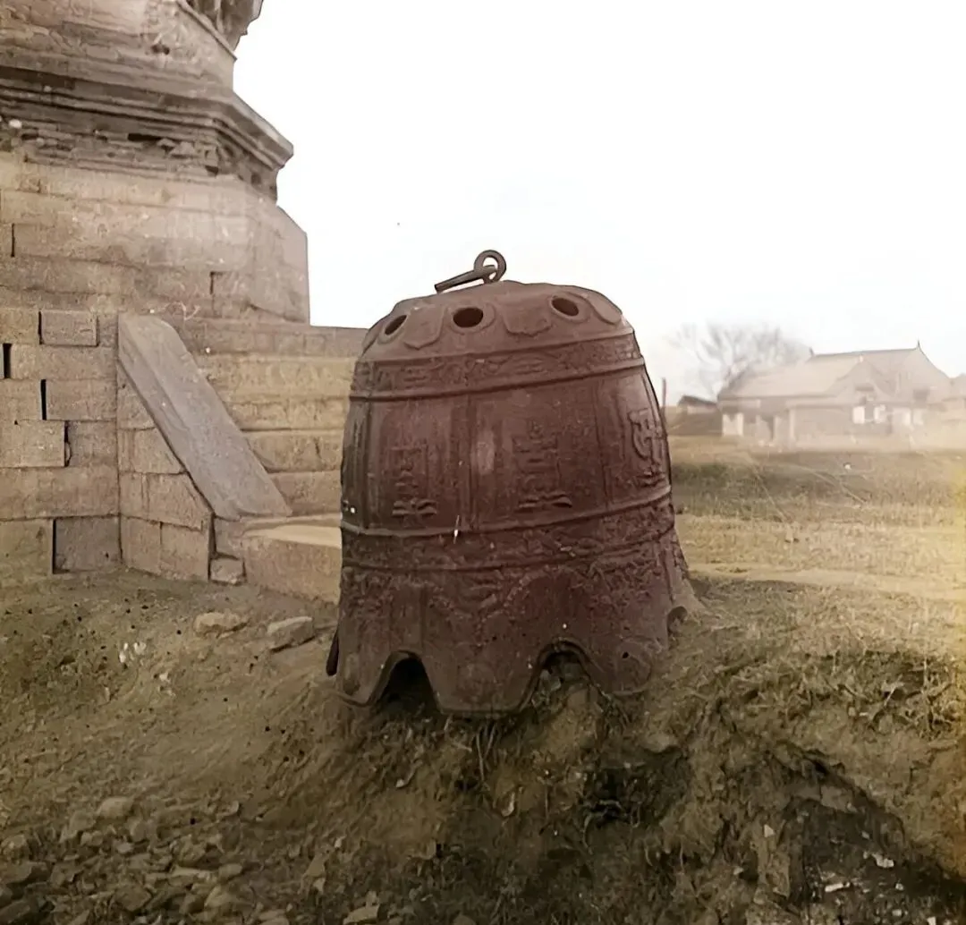 别看钟就这么搁地上,一吨来重,通身生着岁月的锈,钟身上的篆字和花纹还在,爷爷说以前庙里晨钟暮鼓这是头功,这种钟一敲下来声儿有回音,方圆几里能听到,后来废了,有的钟直接撂在庙门口当摆设也不稀罕。