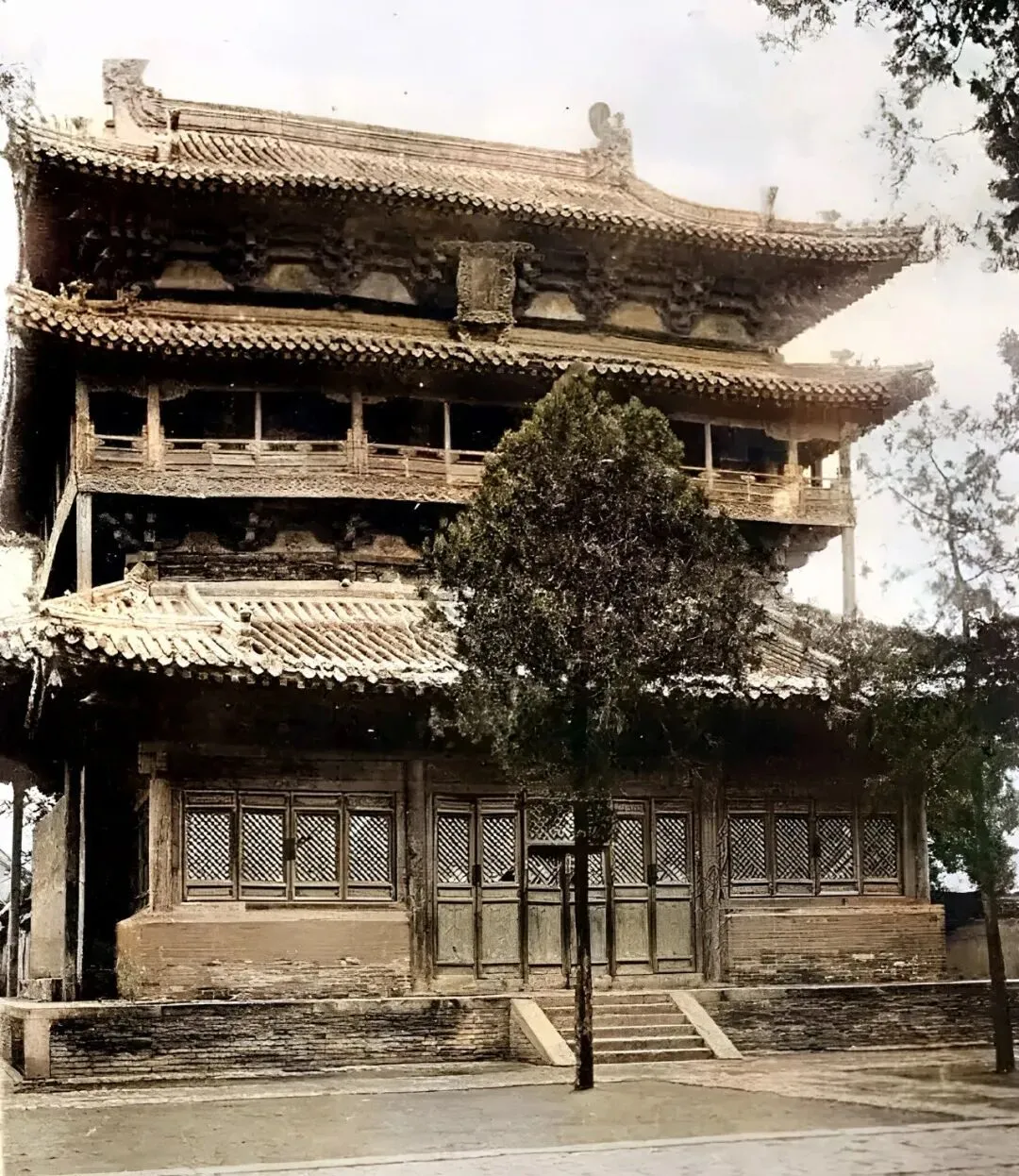 图里这栋三层大木楼,雕梁画栋,灰瓦黄墙,檐角蹬着“兽头”,楼下门窗是斜格子的,有点气派但不张扬,以前谁家娶亲祭礼,常在这种地标旁约定见面,人头攒动全靠一栋楼作主心骨,城里的老人都知道这地方哪个角落能避风。