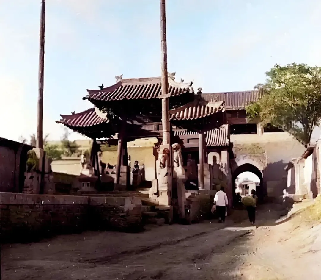 这个石牌坊后头就是大西门,城门楼挡着风,门脸端正,木梁子上挂着牌匾,进城出城的牛车马车、街坊骑车的、招呼声一边一边地响,地上一层土,树荫子下歇脚的老人家有不少,这种街景现在真留不下几处了。