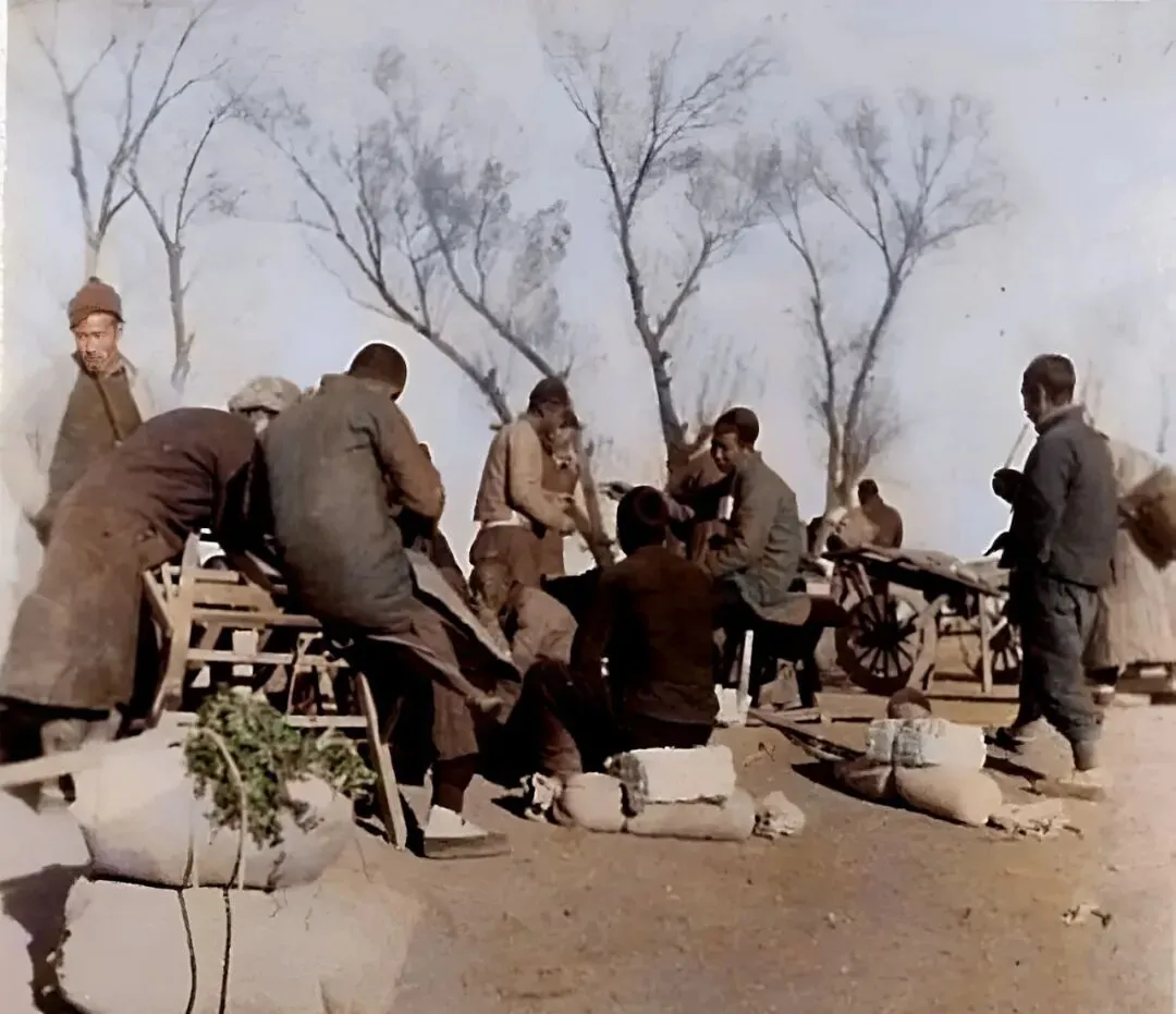 这些挑夫忙了一早上,肩上压着沉甸甸的担子,街头一找空地直接蹲着,口袋一撒,这歇息的姿势十年不变,外人看着是苦,他们自己倒觉得有工有活最安生,乡下亲戚进城来,别的先不打听,见了这些“挑担的”就知道城里还热闹着呢。