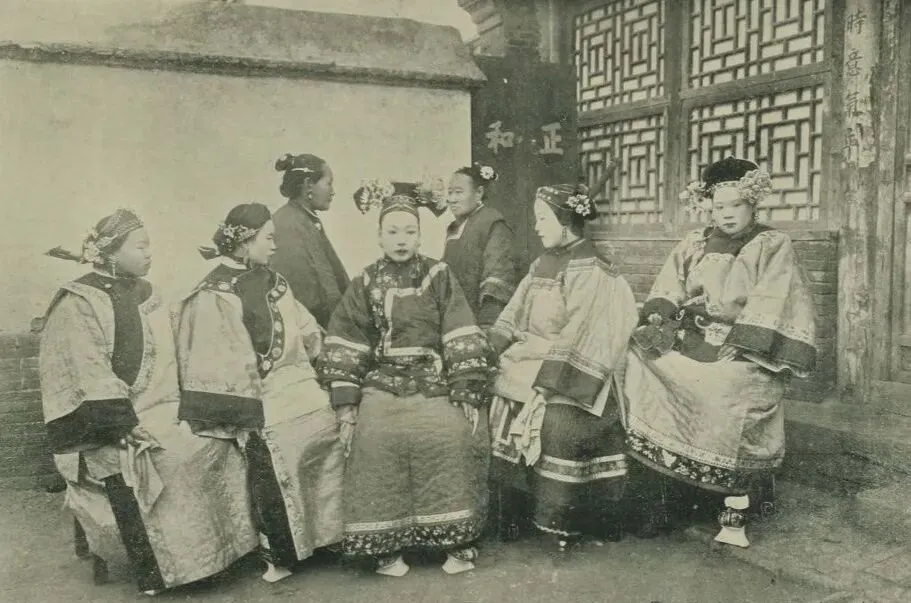这组照片里的满族姑娘们,一个个正襟危坐,带花头饰,神态安安静静,院子角落里两个丫鬟侍立,看着像待客或者准备外出,她们的衣角宽厚,绣纹花色都讲究,谁能想现在红毯子写真都请不来这种气场,我小时候娘还说,大户人家见着这样一群,准得让路,那是规矩也没人违得起。
