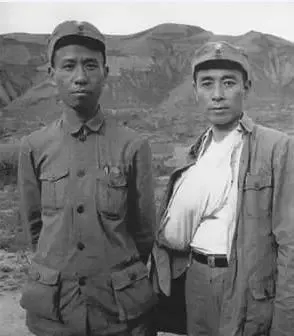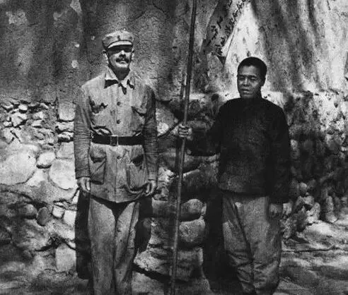 白求恩大夫和他的朋友,一个年纪比较大的儿童团员的合影