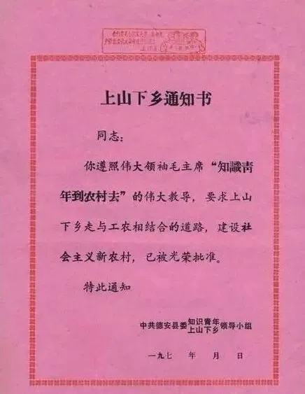 上山下乡通知书