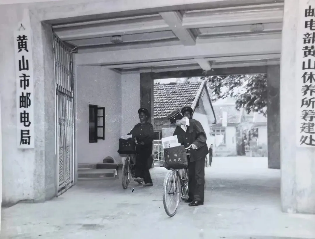 老邮电局大厅有典型的老式木制柜台、公告栏、邮电业务价目表;营业员着统一制服,办理挂号信、包裹、电报等业务;邮票柜台是集邮爱好者常去的地方。“邮电部黄山休养所筹建处” 的字样,也侧面反映了黄山作为全国邮电系统疗养地的特殊地位。